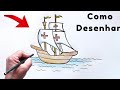 Veja como desenhar um navio, uma caravela de Pedro Álvares Cabral que descobriu o Brasil em 1500. Esse é um desenho de navio do descobrimento do Brasil para desenhar e colorir.